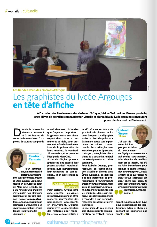 Retrouvez dès à présent l'article "Les graphistes du lycée Argouges en tête d'affiche" paru dans le dernier numéro du journal d'information de la ville de Saint Martin d'Hères.